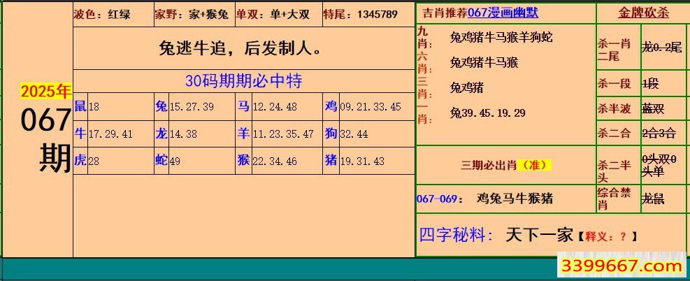 | 主题 :067期:小鱼儿30码期期中+幽默猜测 |