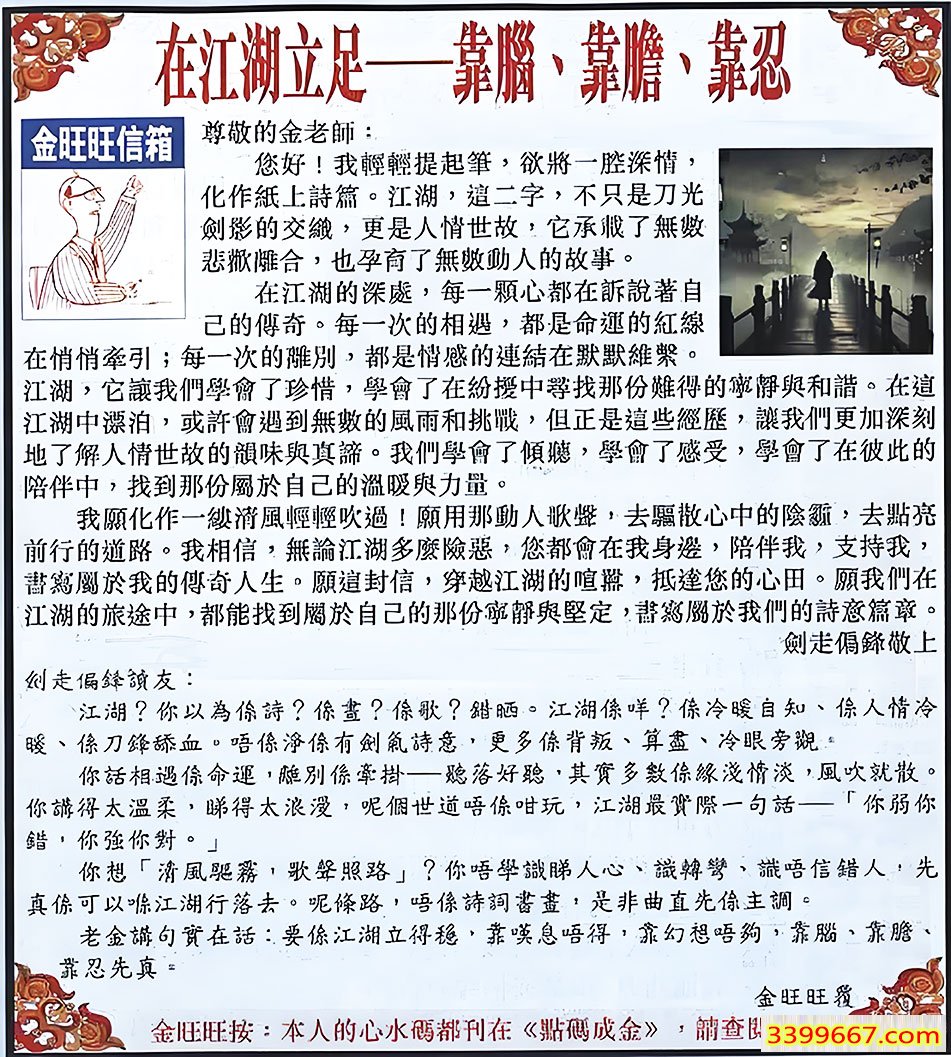 | 主题 :096期:金旺旺信箱彩民推荐→→《在江湖立足——靠腦、靠膽、靠 |