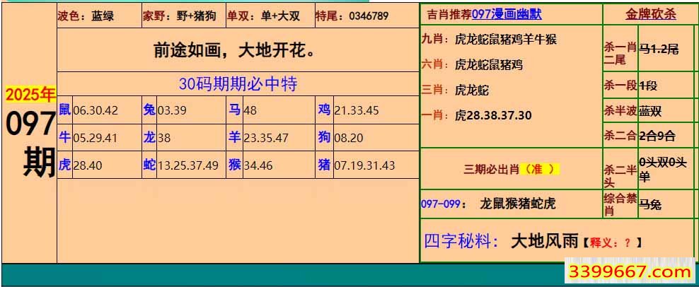 | 主题 :097期:小鱼儿30码期期中+幽默猜测 |