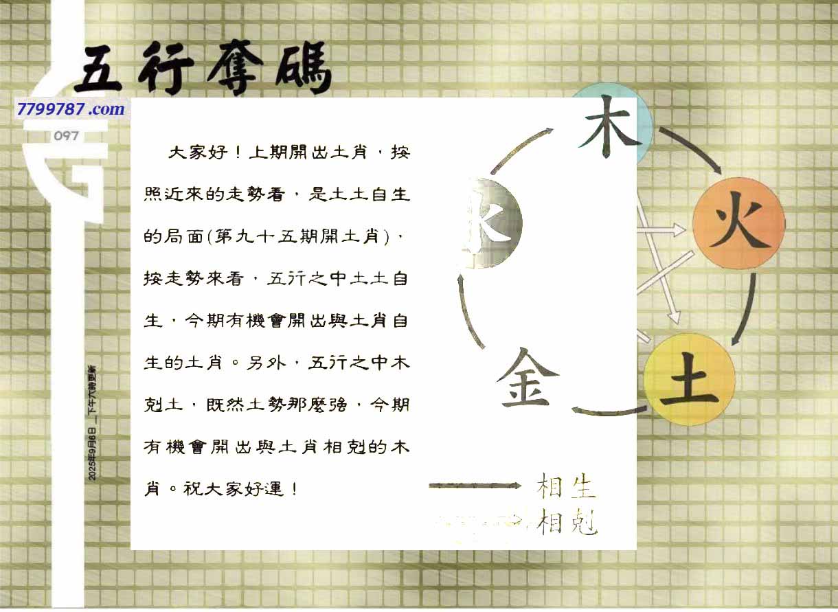 | 主题 :097期:六合皇金句/老总论码/萧公子/林大师/五行夺码/老总信箱截 |
