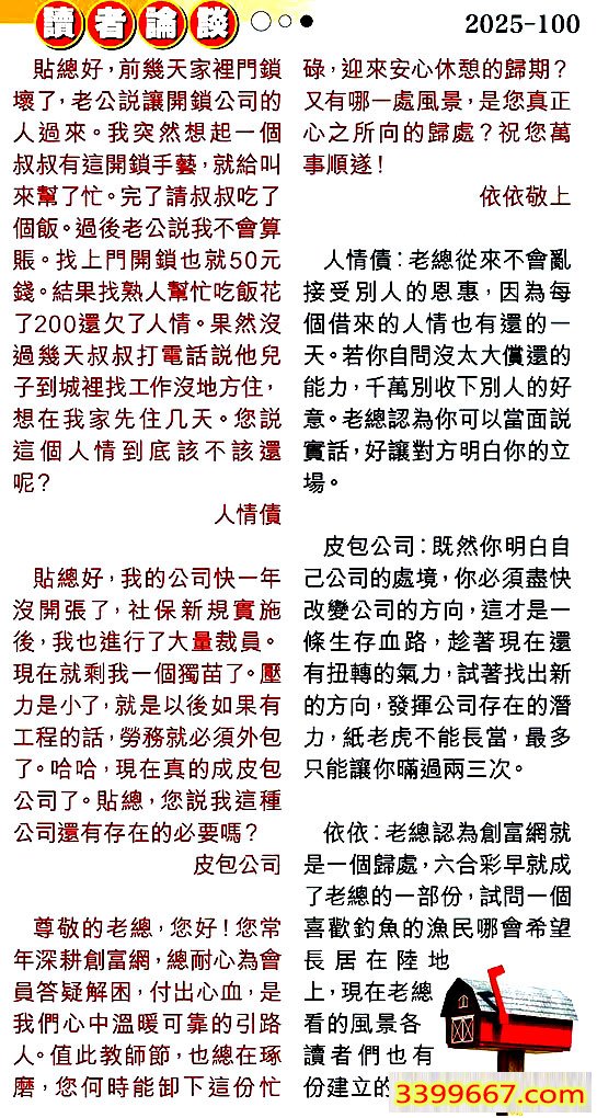 | 主题 :100期:彩民推荐〖貼信讀者論壇〗 |