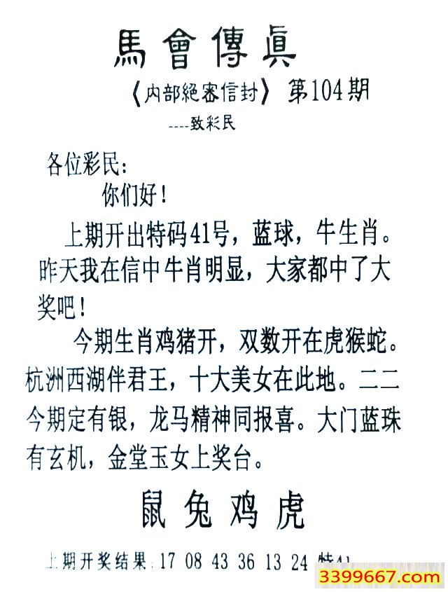 | 主题 :104期:首发推荐:≮馬會傳眞≯→(香港正版) |