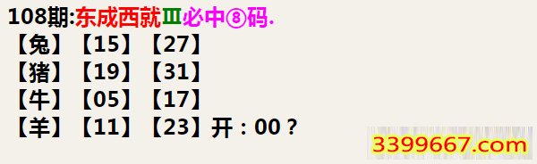 | 主题 :108期:东成西就Ⅲ必中⑧码 |