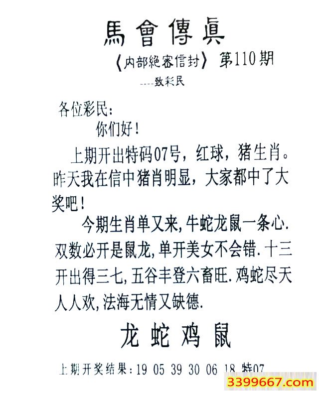 110期:首发推荐:≮馬會傳眞≯→(香港正版)