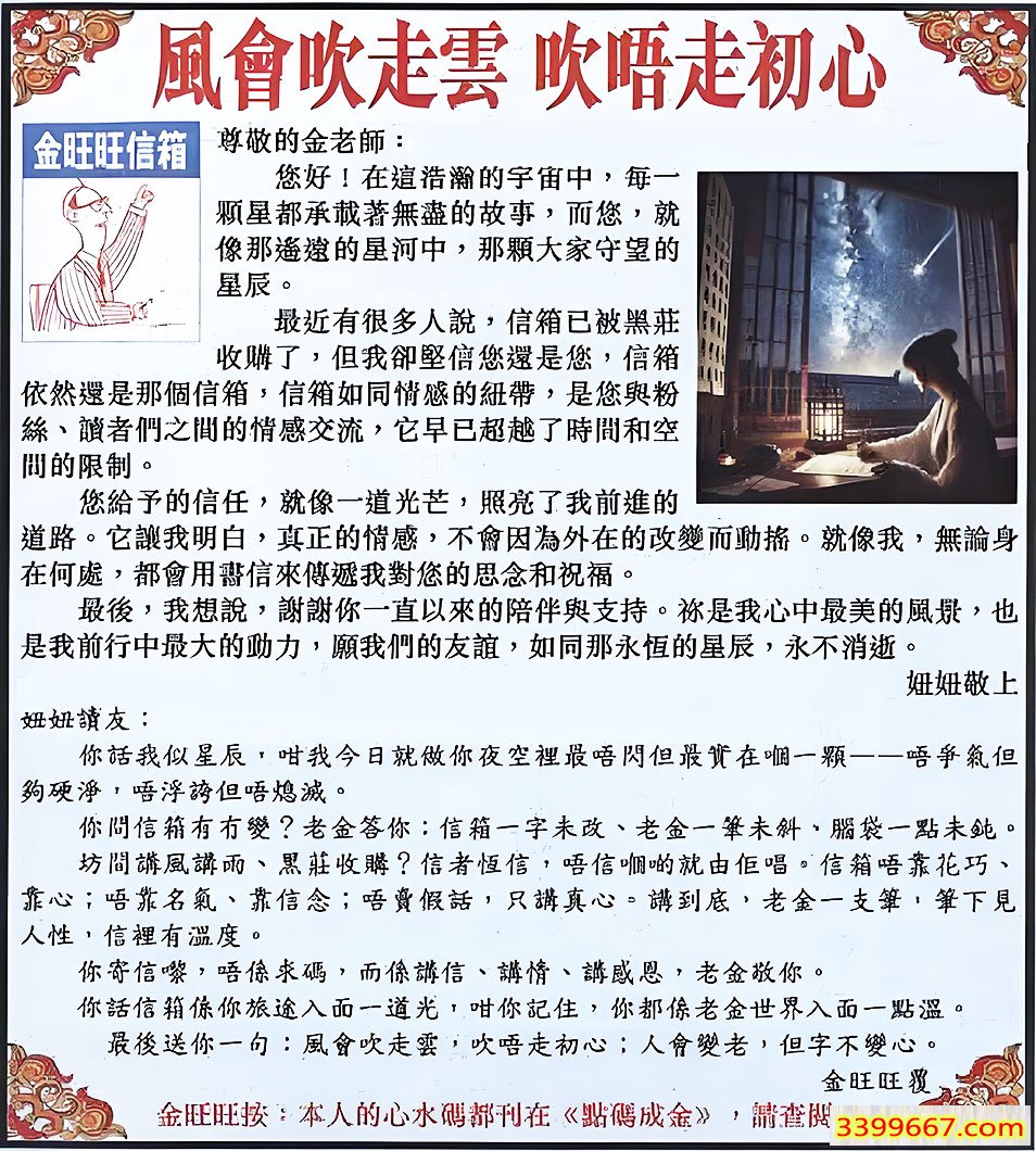 | 主题 :115期:金旺旺信箱彩民推荐→→《風會吹走雲 吹唔走初心》 |