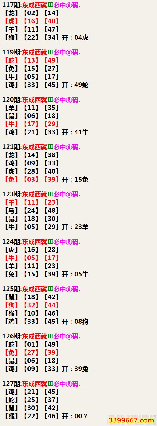 | 主题 :127期:东成西就Ⅲ必中⑧码 |