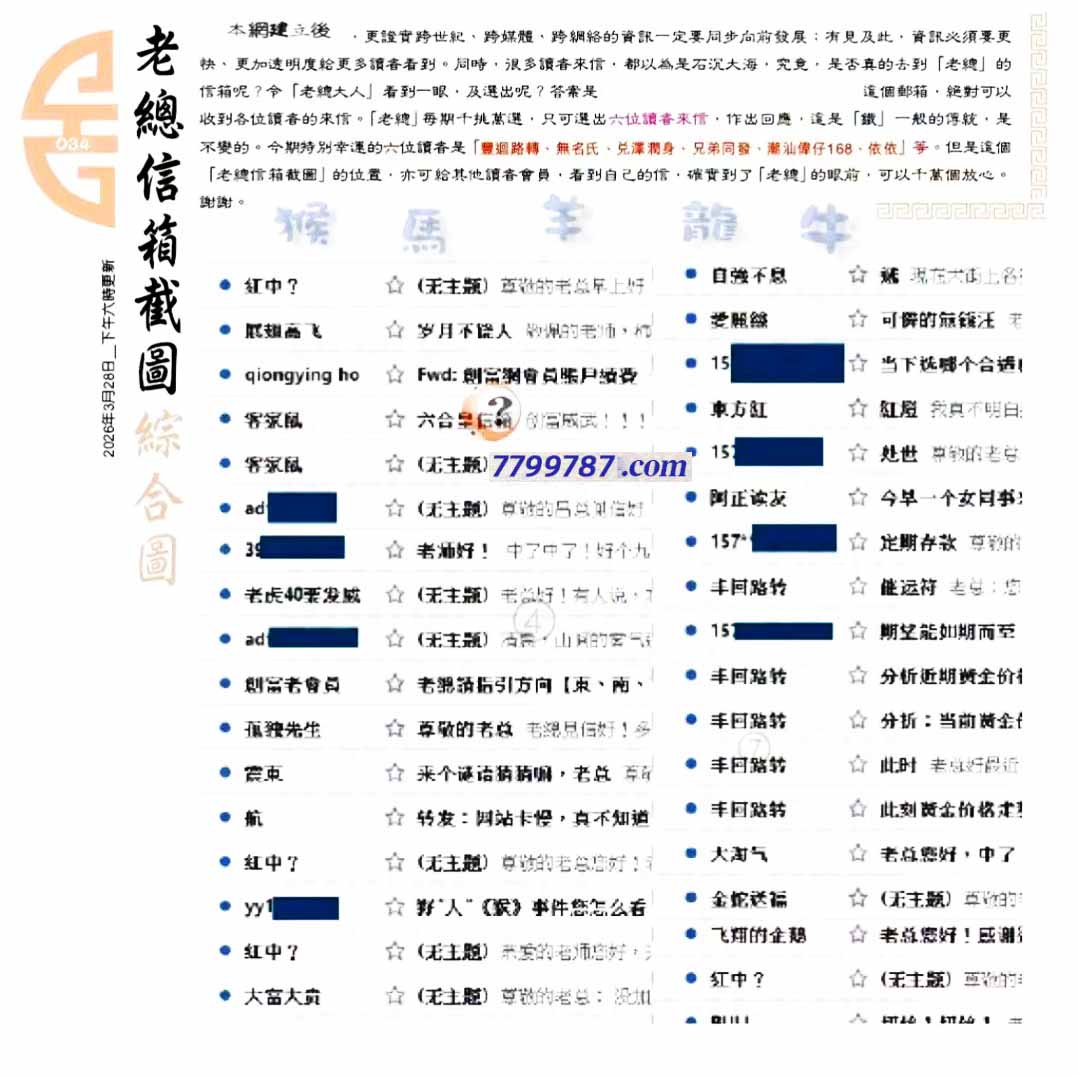 主题 : 034期:六合皇金句/老总论码/萧公子/林大师/五行夺码/老总信箱截图