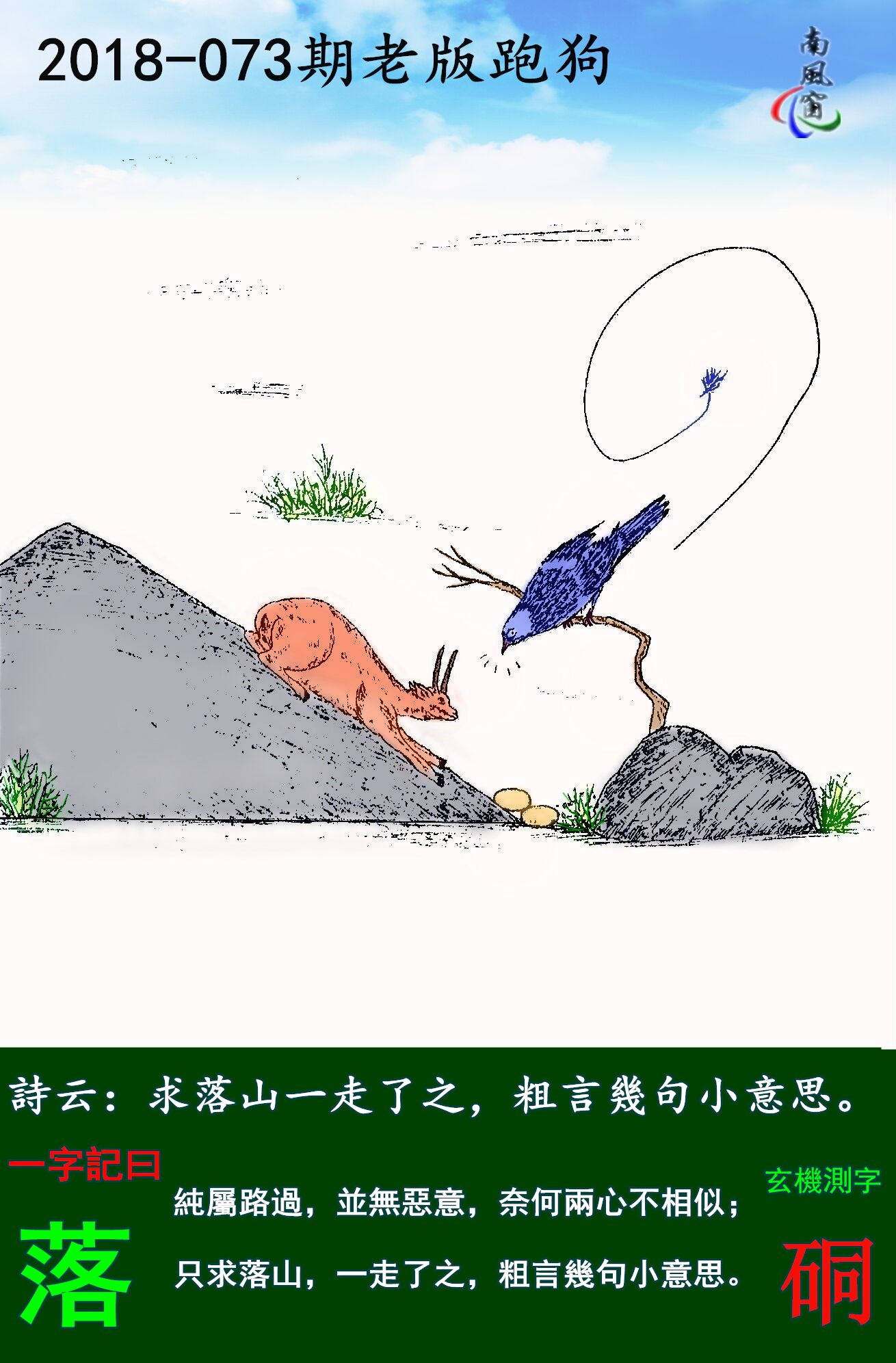 073期老版跑狗一字記之曰:【落】