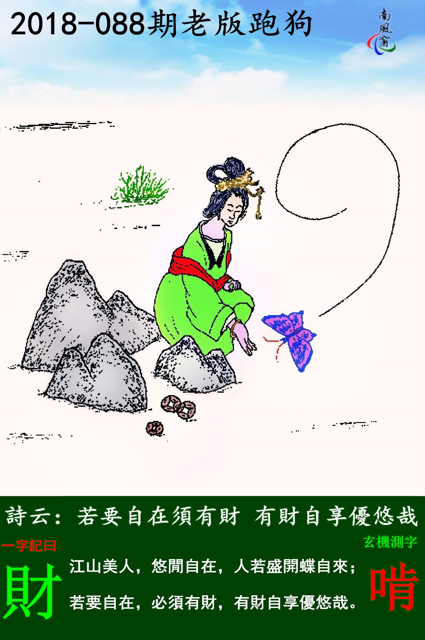 主题 : 088期:老版跑狗一字記之曰:【財】玄機測字《懷》