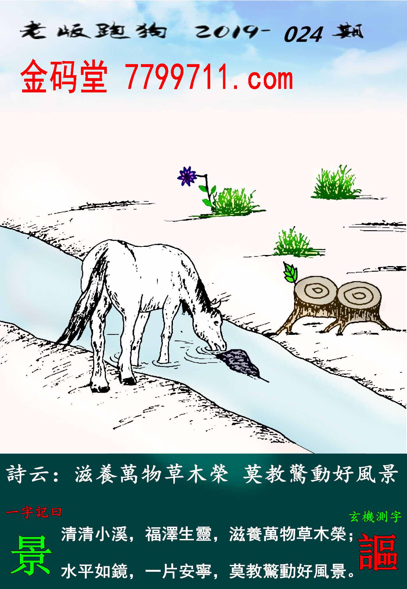 024期:老版跑狗一字記之曰【景】玄機測字《謳》