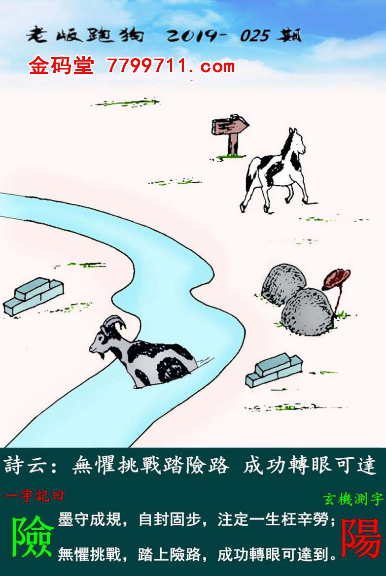 025期:老版跑狗一字記之曰【險】玄機測字《陽》