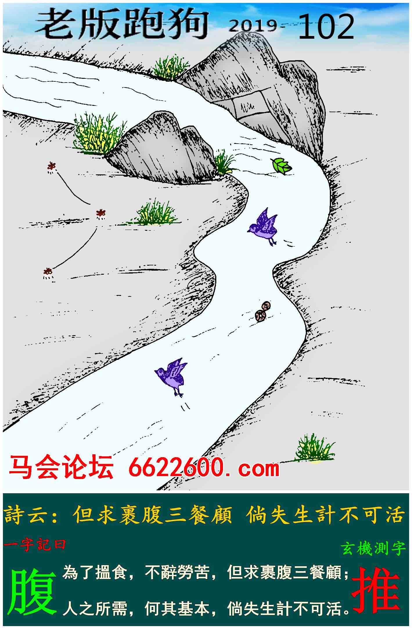 主题 : 102期:老版跑狗一字記之曰【腹】玄機測字《推》