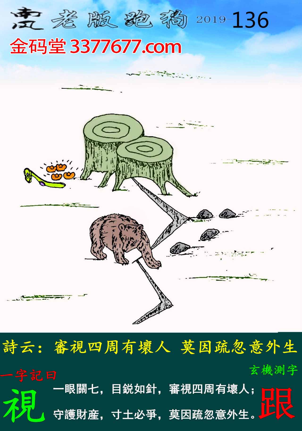 136期老版跑狗一字記之曰:【視】玄機測字:《跟》