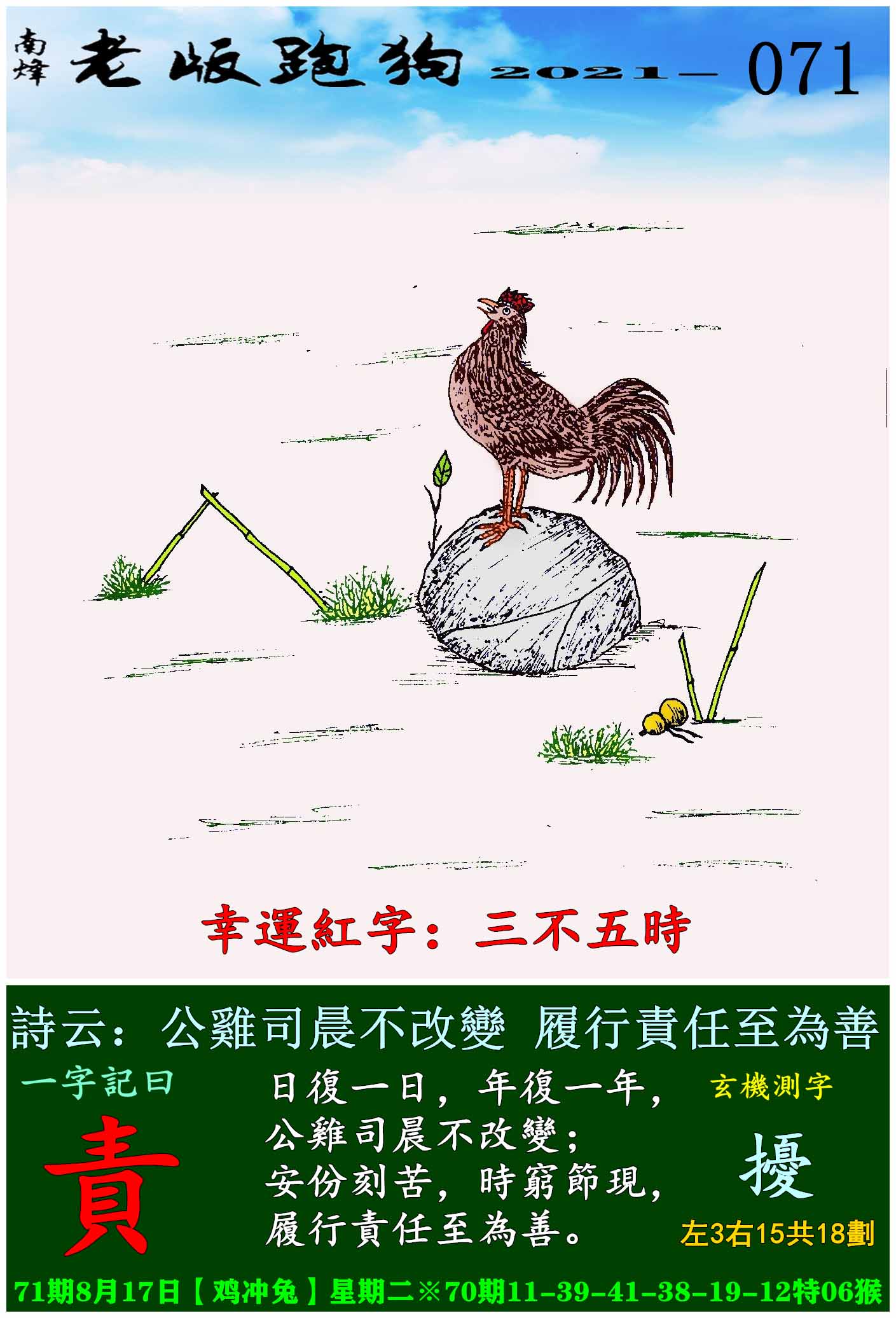 071期老版跑狗一字記之曰:【責】