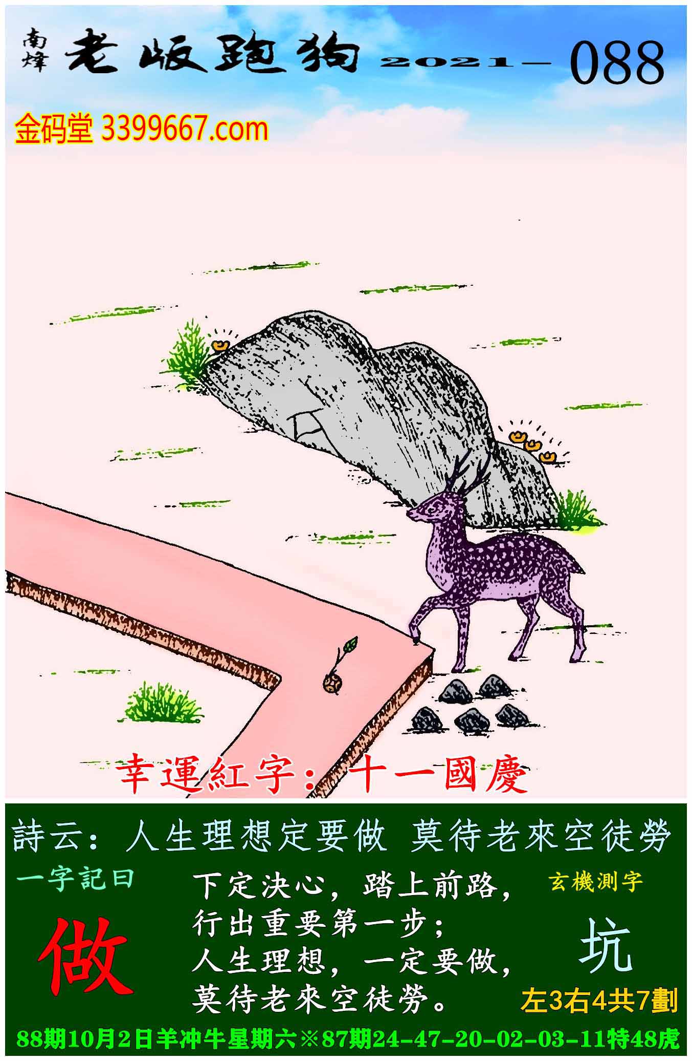 088期老版跑狗一字記之曰:【做】