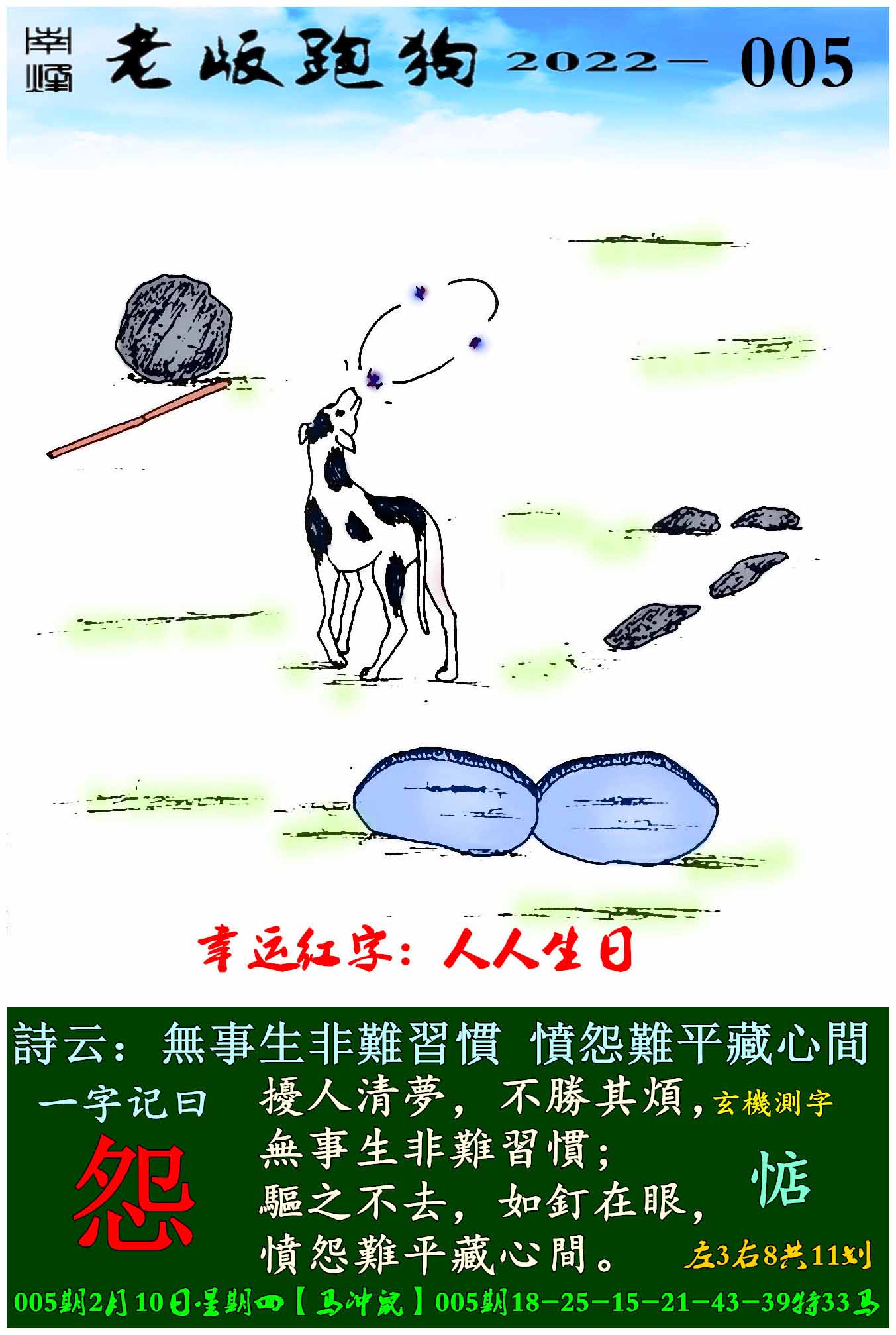 005期老版跑狗一字記之曰:【怨】