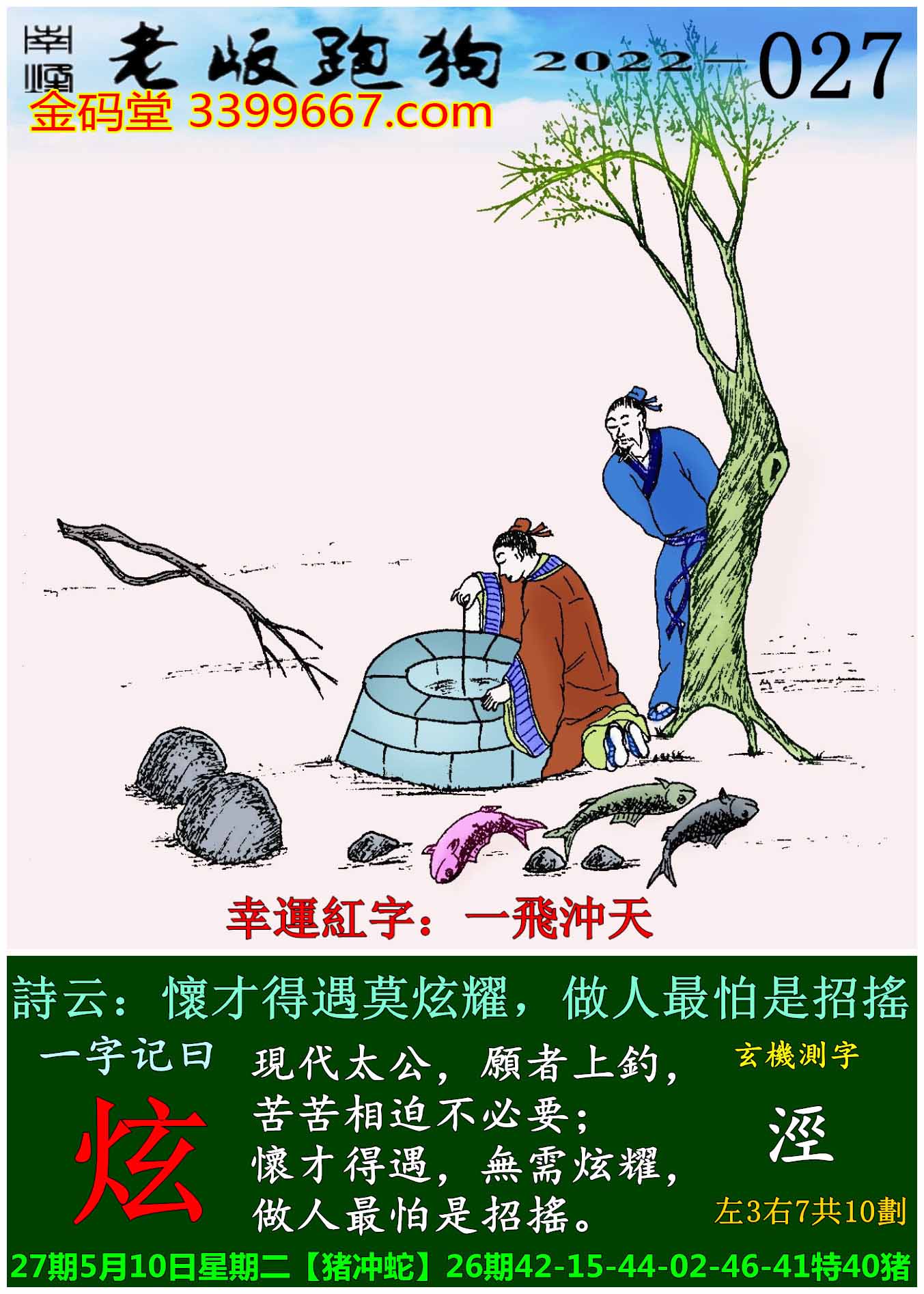 027期老版跑狗一字記之曰:【炫】玄機測字:《涇》