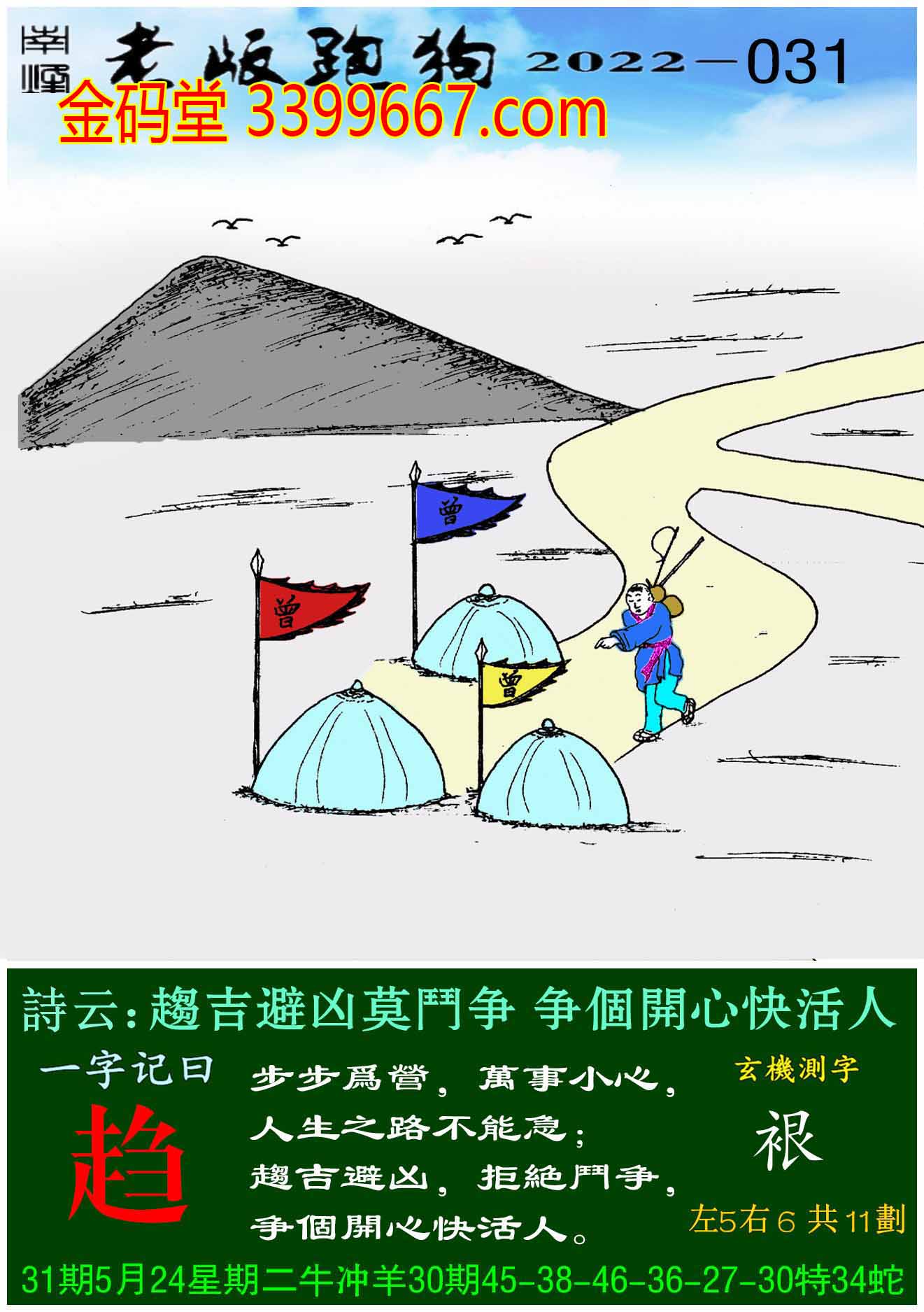 031期老版跑狗一字記之曰:【趨】玄機測字:《裉》