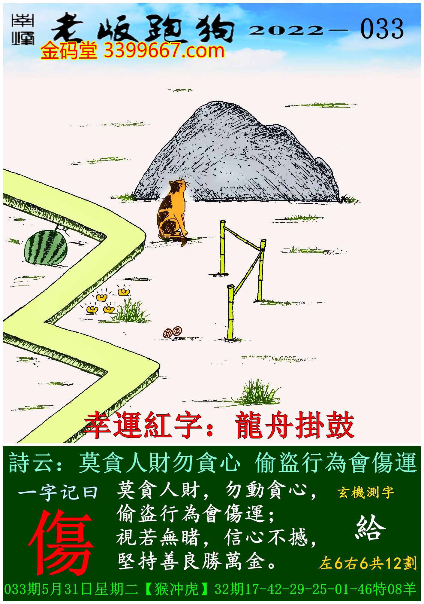 主题 : 033期老版跑狗一字記之曰:【傷】玄機測字:《給》