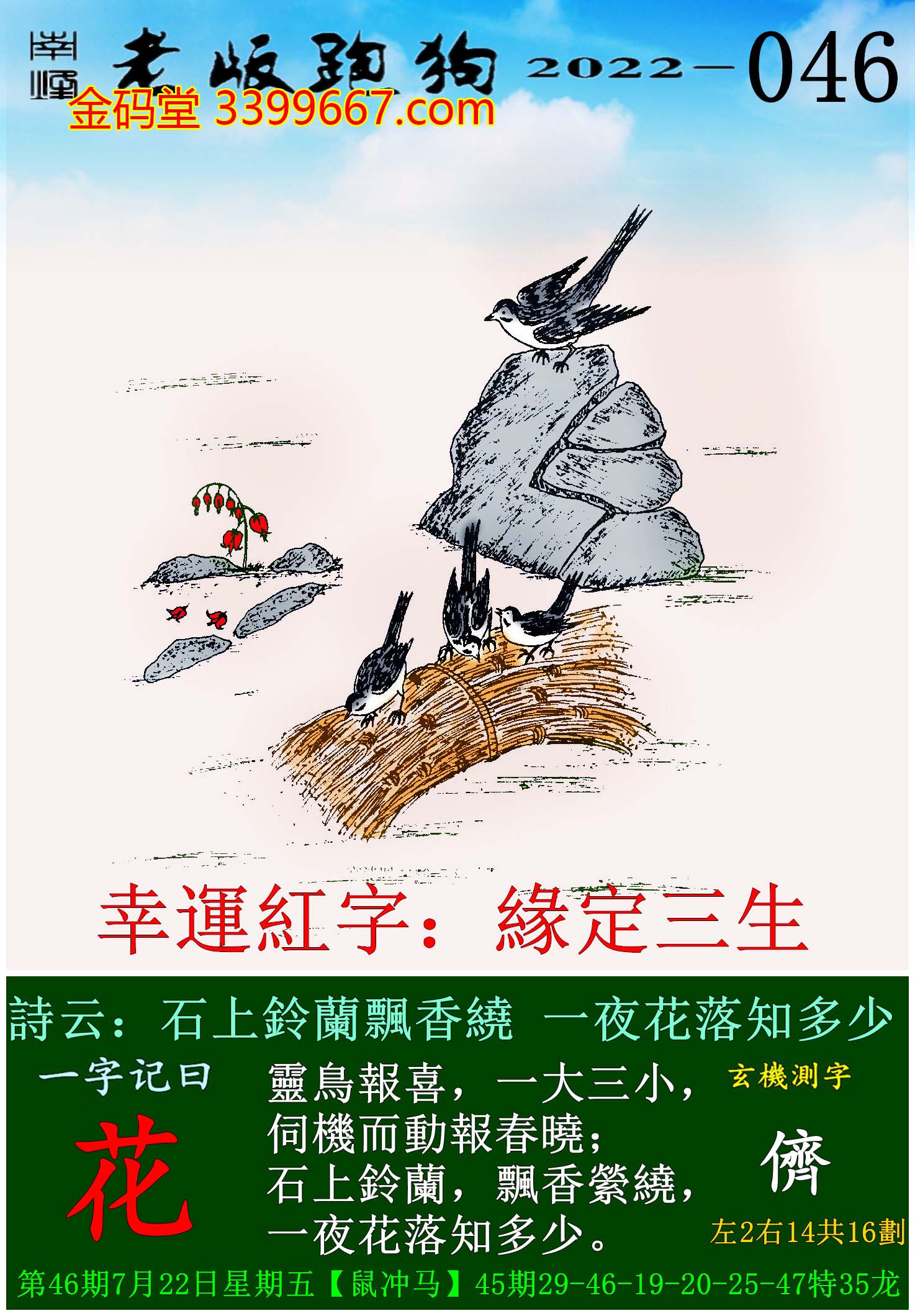 046期老版跑狗一字記之曰:【花】