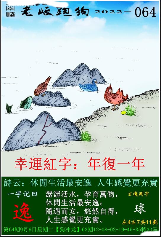 主题 : 064期老版跑狗一字記之曰:【逸】玄機測字:《球》
