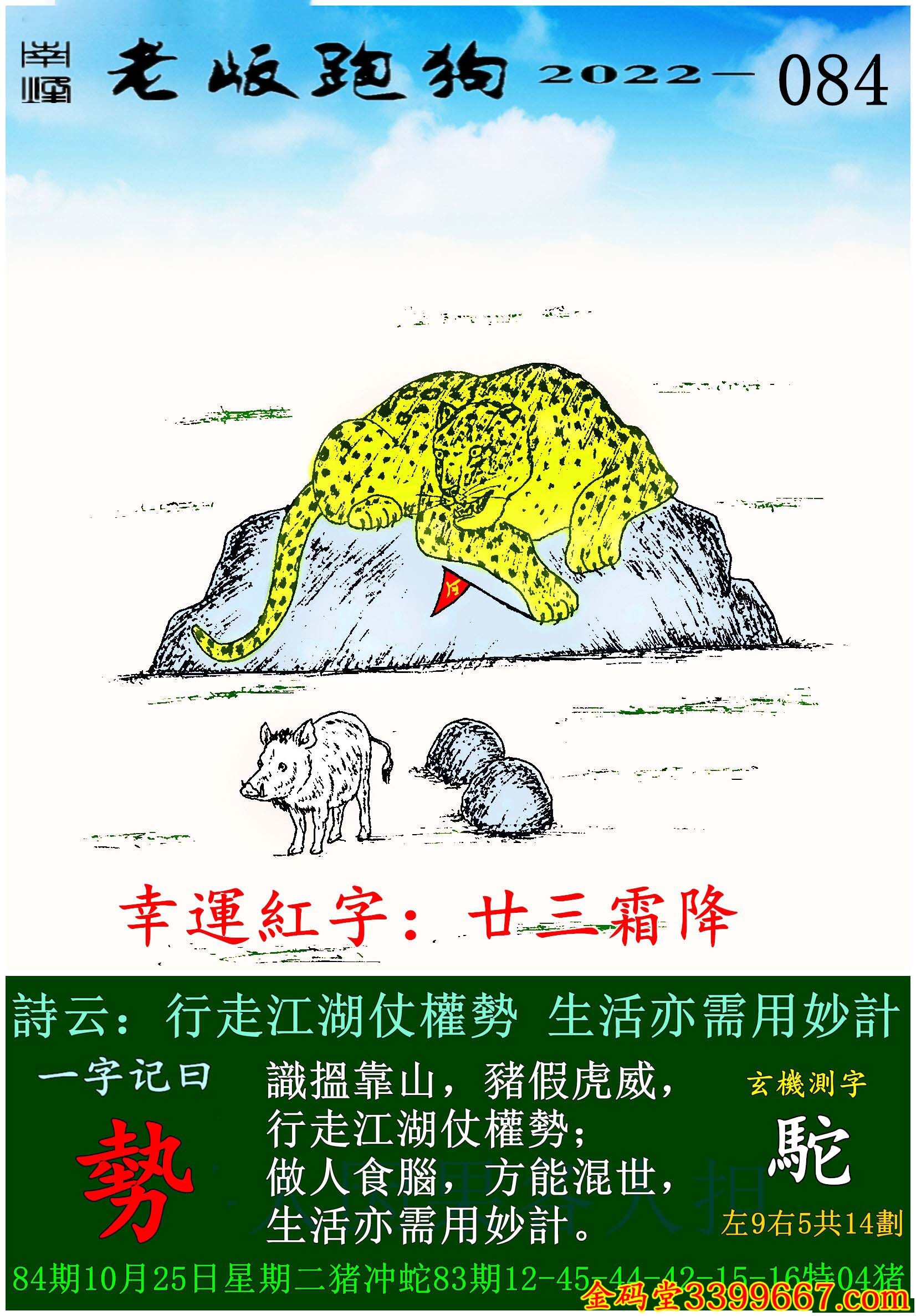 084期老版跑狗一字記之曰:【駝】玄機測字:《勢》