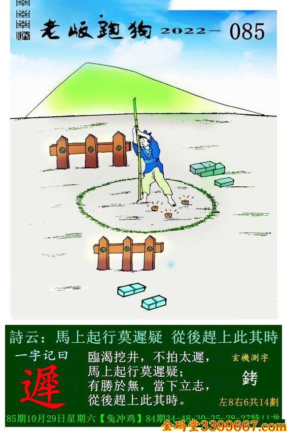 085期老版跑狗一字記之曰:【遲】