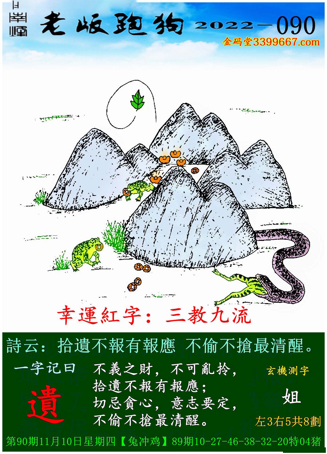 090期老版跑狗一字記之曰:【遺】