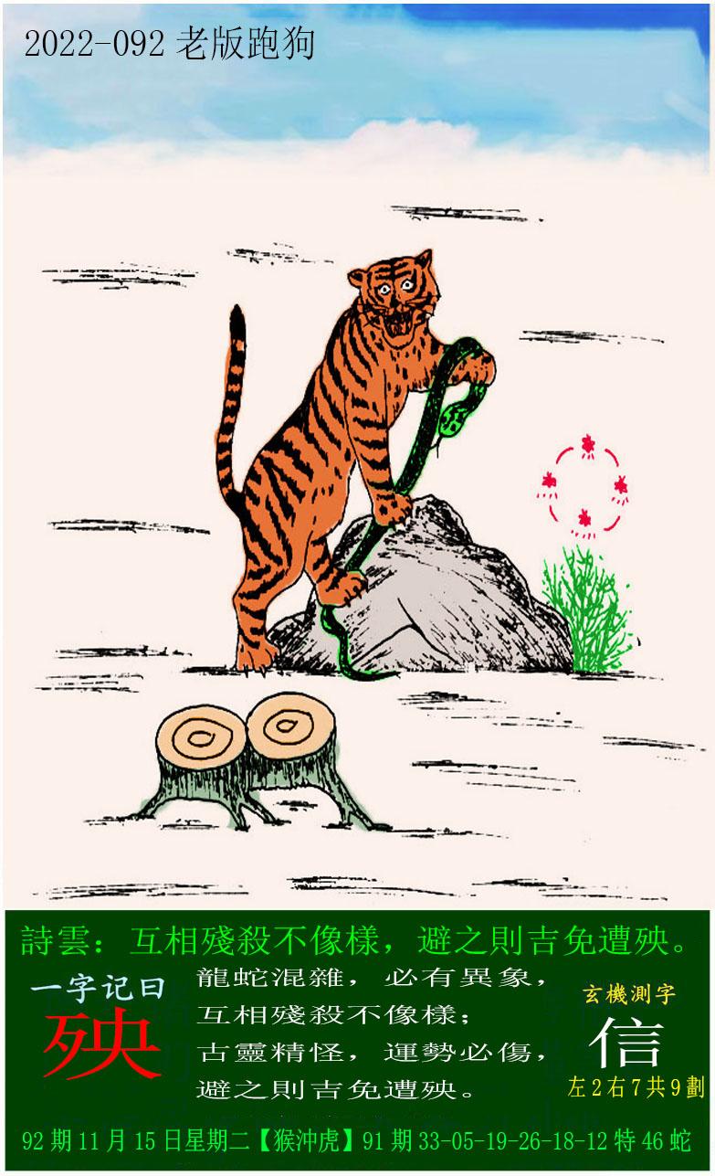 主题 : 092期老版跑狗一字記之曰:【殃】 玄機測字:《信》