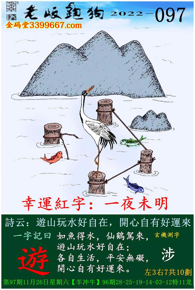 主题 : 097期老版跑狗一字記之曰:【遊】玄機測字:《涉》