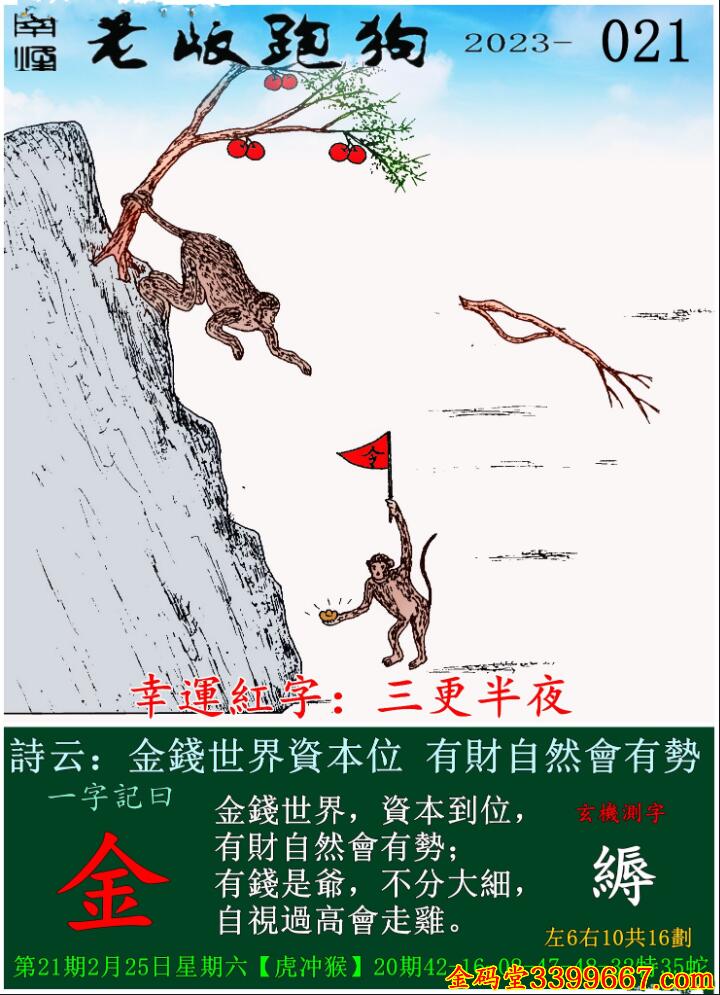 021期老版跑狗一字記之曰:【金】