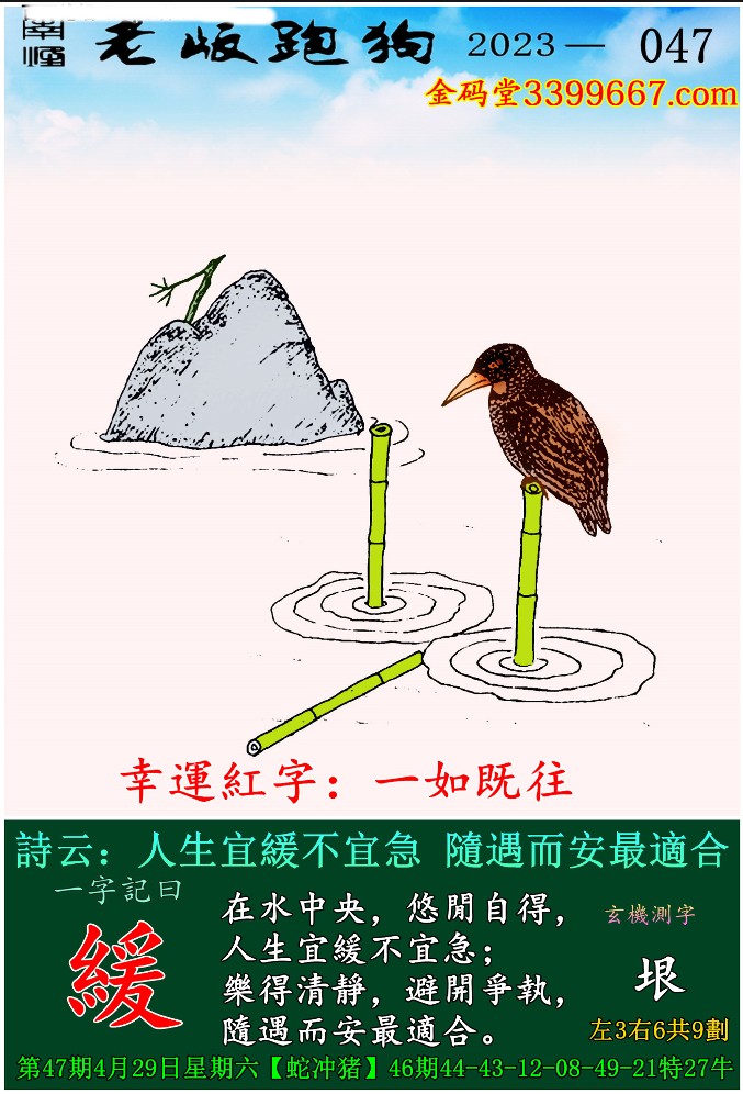 主题 : 047期老版跑狗一字記之曰:【緩】 玄機測字:《垠》
