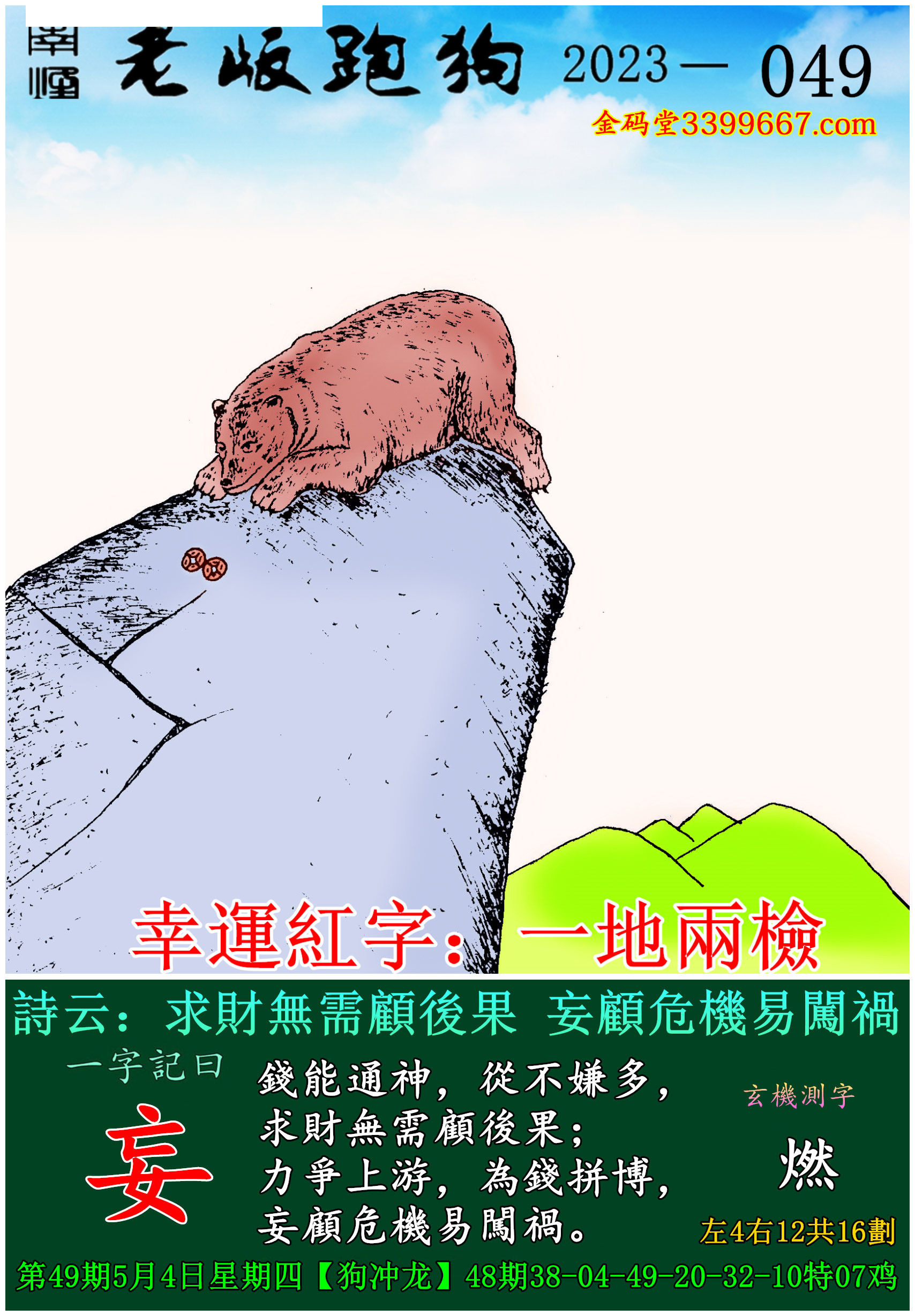 主题 : 049期老版跑狗一字記之曰:【妄】玄機測字:《燃》