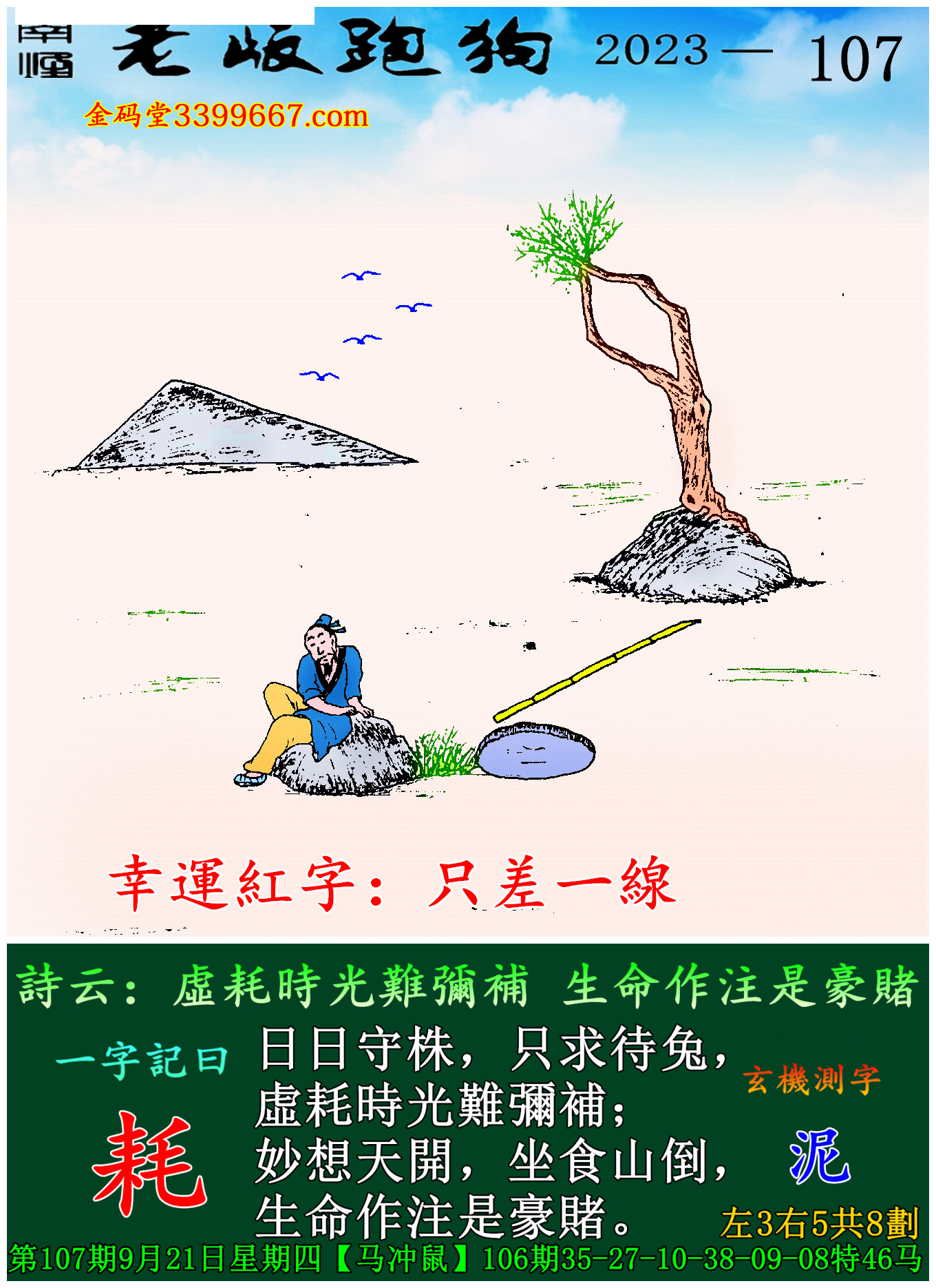 主题 : 107期老版跑狗一字記之曰:【耗】玄機測字:《泥》