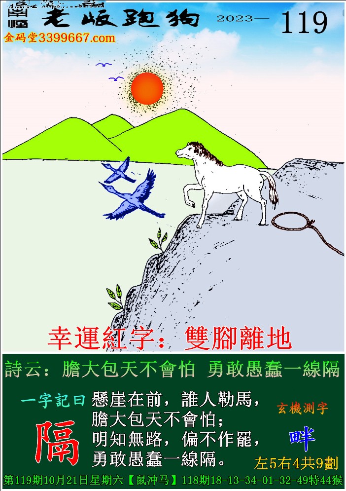 主题 : 119期老版跑狗一字記之曰:【隔】 玄機測字:《畔》