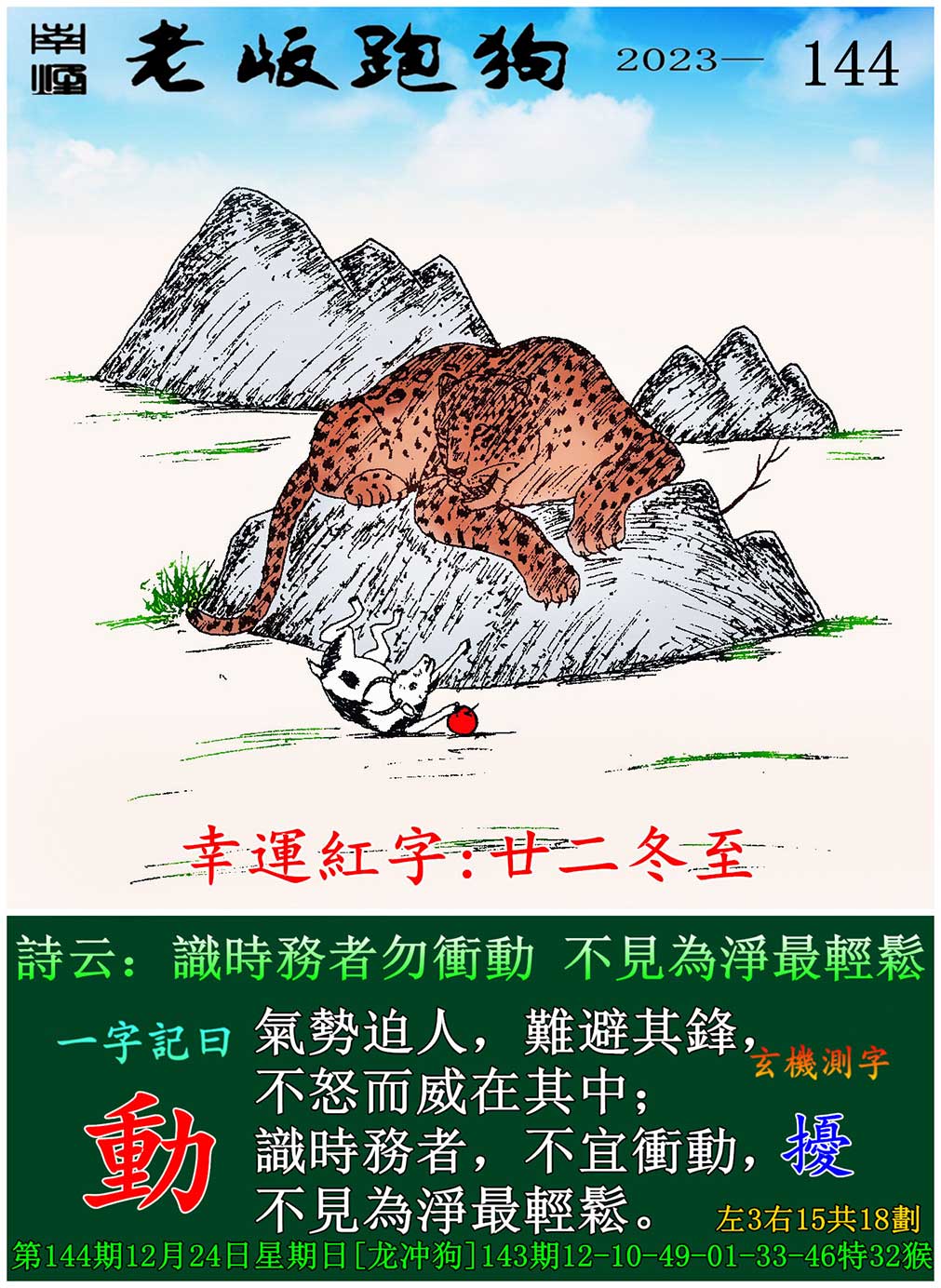 144期老版跑狗一字記之曰:【動】