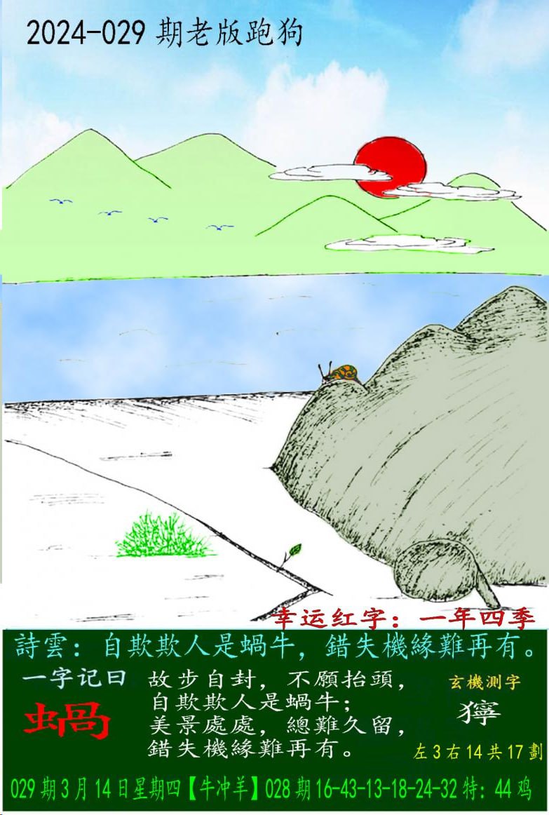 029期老版跑狗一字記之曰:【蝸】 玄機測字:《獰》