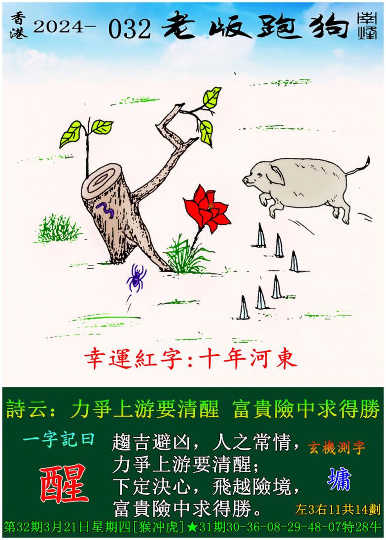 032期老版跑狗一字記之曰:【醒】 玄機測字:《銳》