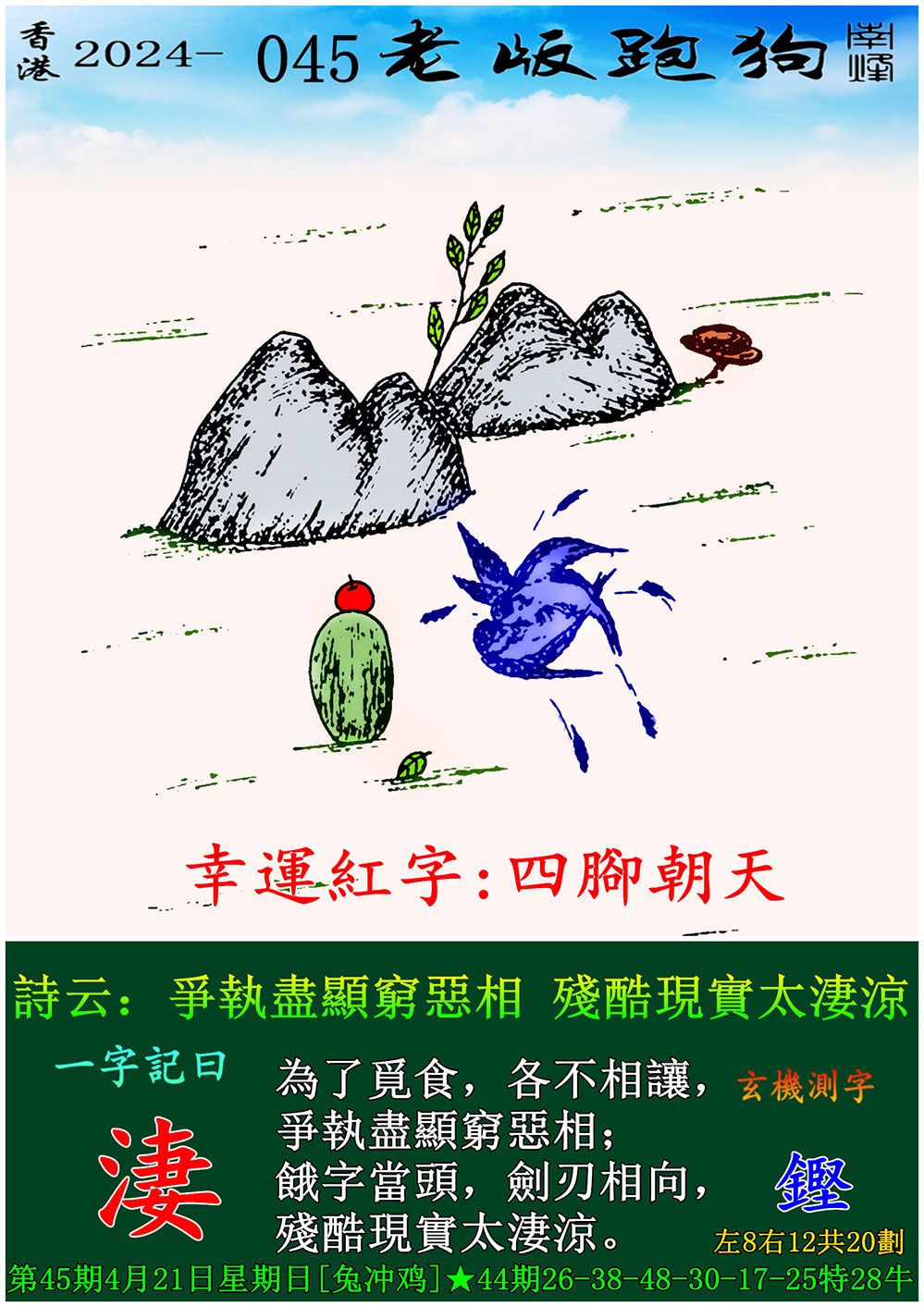 045期老版跑狗一字記之曰:【淒】