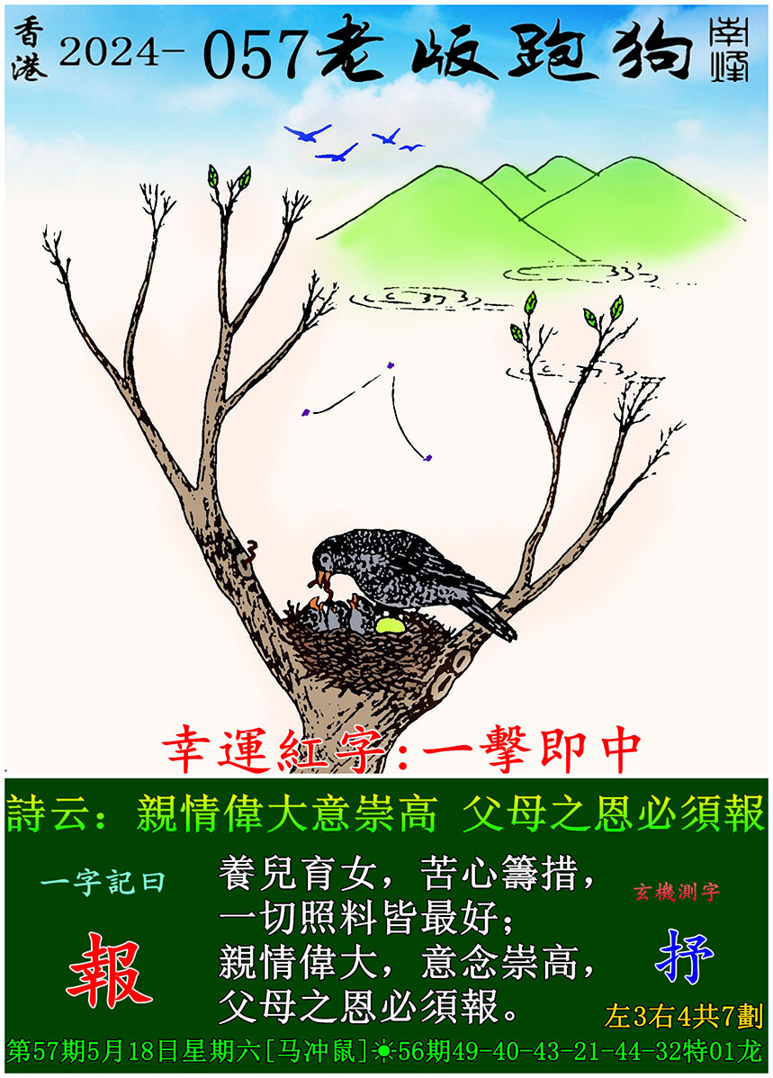 057期老版跑狗一字記之曰:【報】