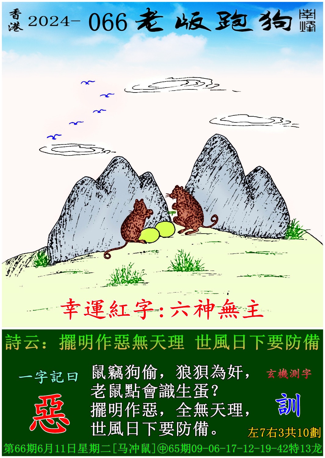066期老版跑狗一字記之曰:【惡】