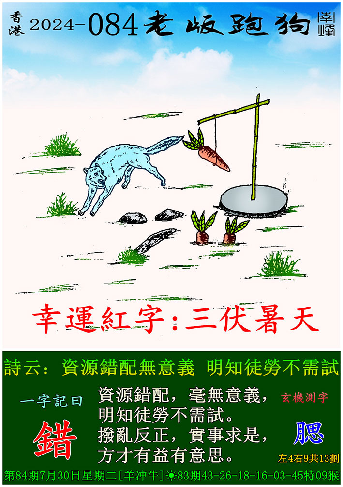084期老版跑狗一字記之曰:【錯】