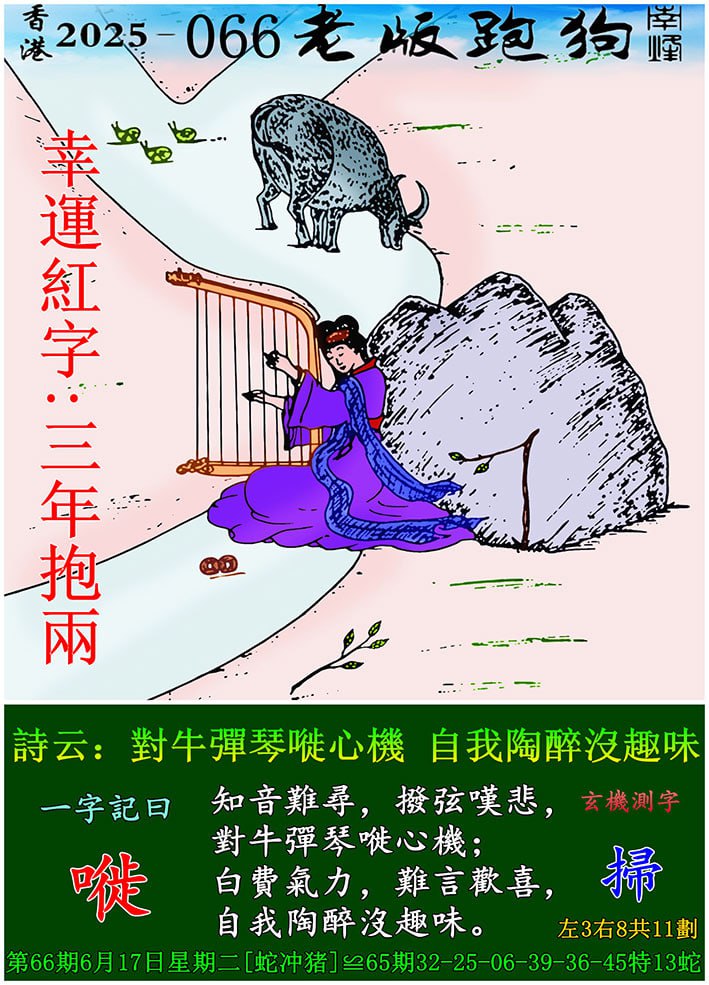066期老版跑狗一字記之曰:【嘥】 玄機測字:《掃》