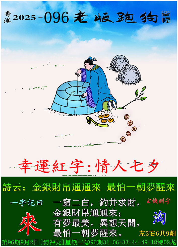 096期老版跑狗一字記之曰:【來】 玄機測字:《洶》