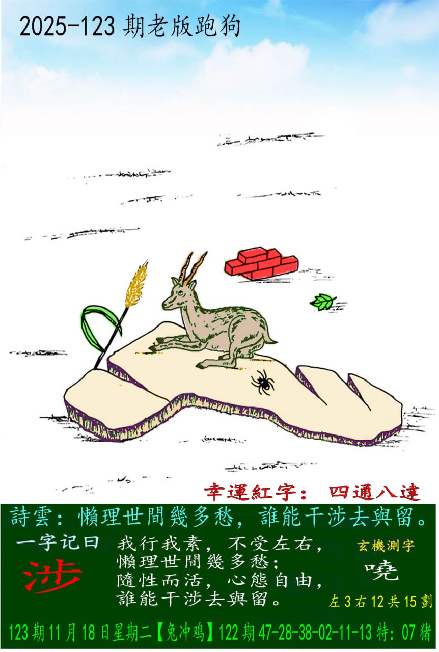123期老版跑狗一字記之曰:【涉】