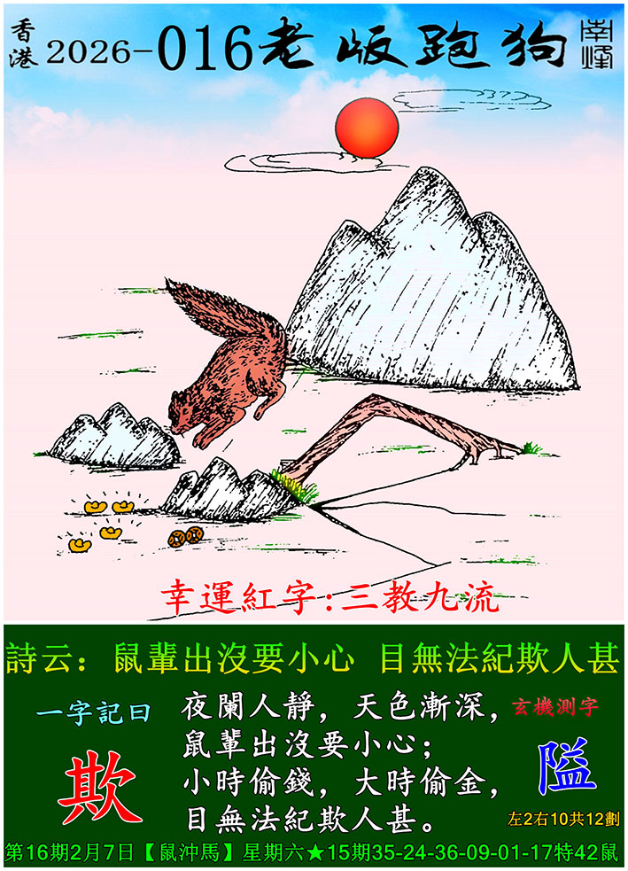 016期老版跑狗一字記之曰:【欺】