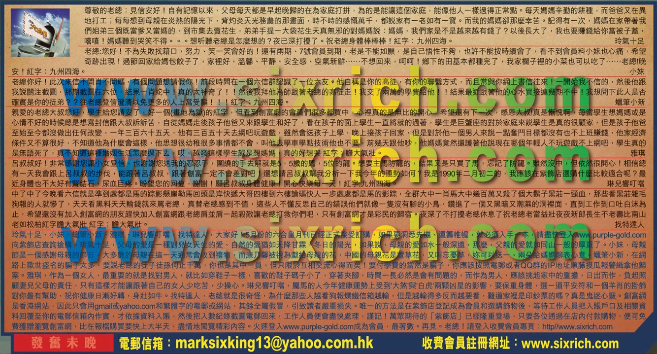 【4】親愛的老總大叔您好,學生給您請安了,好一個(畫地為獄)的紅字,但看到創富網的會員們很多都買中,心裡真的是無比的開心,希望還有下一次,感恩大叔真是慚愧啊,每當學生想媽媽或是心情不好的時候總是想寫封信跟大叔訴訴苦,自從媽媽走後孩子他爸又來跟學生和好了,看在孩子的面上學生一直將就的過著,學生是巨蟹座的對於家庭來說學生是真的很顧家,但是孩子他爸至始至今都沒做出任何改變,一年三百六十五天,他有三百五十天去網吧玩遊戲,雖然會送孩子上學,晚上接孩子回家,但是對於他一個男人來說一點奮鬥目標都沒有也不上班賺錢,他家經濟條件又不算很好,不知道他為什麼會這樣,他思想很幼稚很多事情都不會,叫他去學車學點技術他也不要,前幾天跟他吵,他媽媽竟然還護著他說現在哪個年輕人不玩遊戲不上網吧,學生真的是無語死了,真不知道這種婚姻生活怎麼過下去,哎,越發這樣學生越是想媽媽,真的好想哭,紅字:膽大氣壯。 ---雅琪