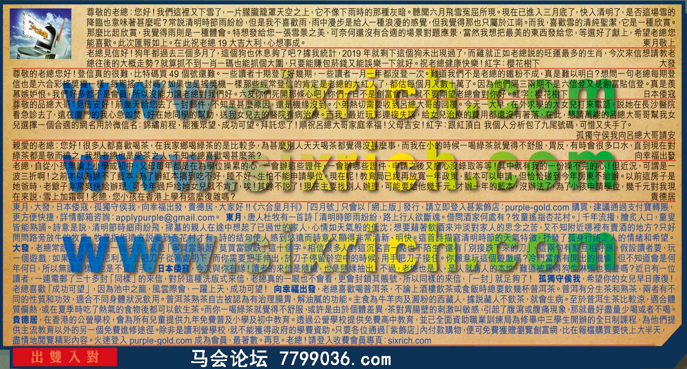 【3】尊敬的老總您好!登信真的很難,比特碼買49個號還難。一些讀者十期登了好幾期,一些讀者一月一年都沒登一次。難道我們不是老總的鐵粉不成,真是難以明白?想問一句老總每期登信也是六合彩搖獎機一樣!每期搖六封嗎?如果也是搖獎機一樣那些經常登信的肯定是老總的大紅人了,都估每個月入數十萬了。因為他們隔三兩期不是六信登又是創富貼信登。真是羨慕嫉妒恨。我們好多都不是會员:所以沒能力讓老總對我們好。六友你們死開那條心吧!你們一日不是創富會员就不要期望老總會對你好。紅字:樱花椅下 ---日本倭寇