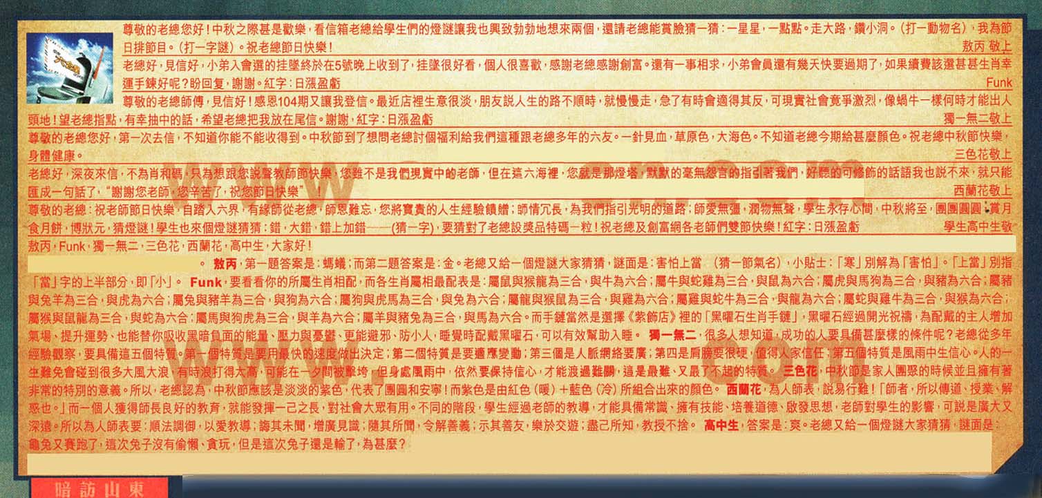 105期:六合皇红字【暗訪山東】暗码《04 15 33 38》