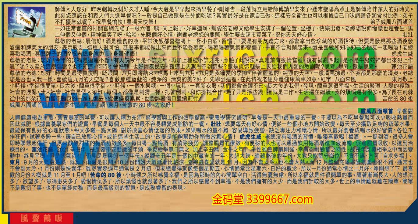 【2】.一如往常習慣的打開官網先瞄了一眼六信,咦,又上報了,好幸運啊,親愛的老總又給學生安排了一個位置,坐穩了,快樂出發。老總您說伸懶腰也是養生,馬上伸個又伸個,精神氣爽了呀,哈哈,先賺個好心情,謝謝老總您的關照,學生要去超市買菜了,祝你天天好心情。  壯壯